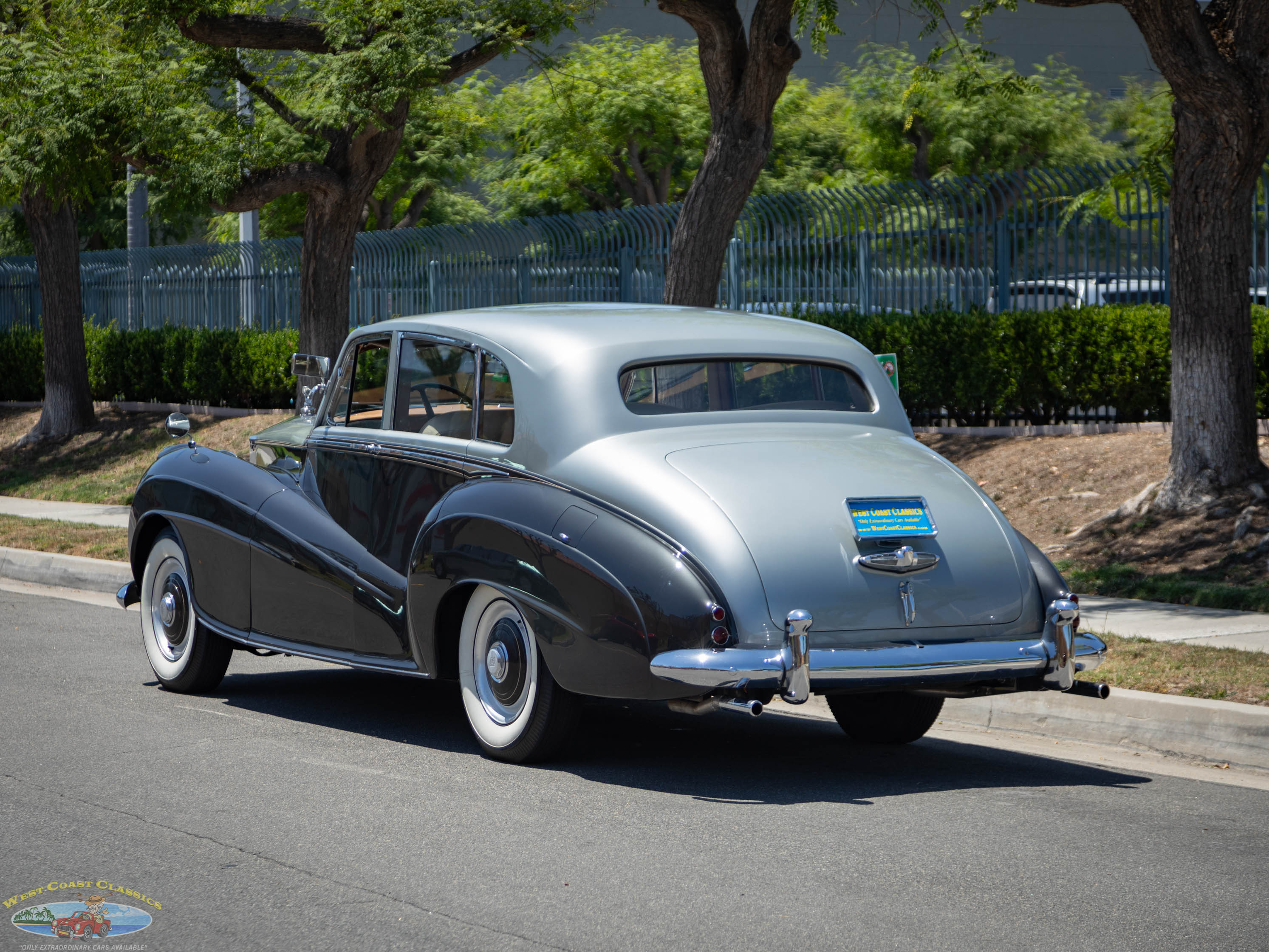 Commissioned new for the Bowes Builder Corporation of Denver, Colorado, this left-hand-drive example was shipped from Southampton, England to New York aboard the Queen Elizabeth II on May 12,1955. Refinished in its original two-tone Black Pearl over Shell Gray paint, the beautifully proportioned saloon features razor-edge styling and a factory sliding metal sunroof. Power is provided by a 4.6-liter inline six-cylinder engine paired with an automatic transmission. Smiths instruments currently display an odometer reading of 37,681 miles.