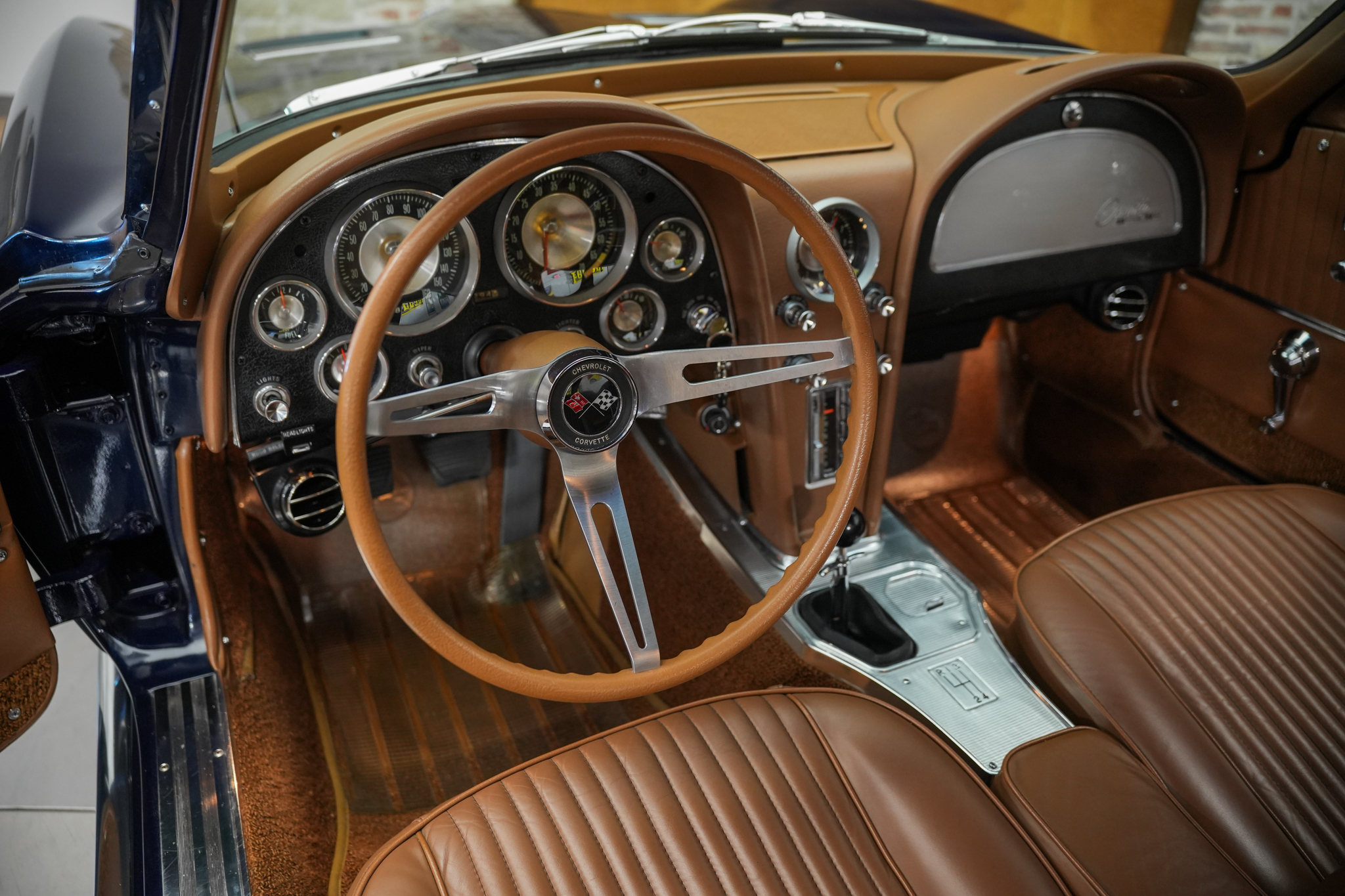 Performance and sound define the Sting Ray’s reputation, key to this example’s legacy appeal. Powered by its original 327/340 HP V8 (RE suffix) engine mated to an aluminum case Borg Warner close-ratio 4-speed (T10-7D) transmission and 3.55:1 Positraction rear axle, the era’s best in factory equipment makes this car sing. Only 613 Corvettes built in 1963 were configured with this specific 3.55 rear-end ratio and just 1,114 examples were trimmed with Saddle leather, lending a rare and seldom seen combination. Vintage Air climate control offers comfort with appropriate period appearance.