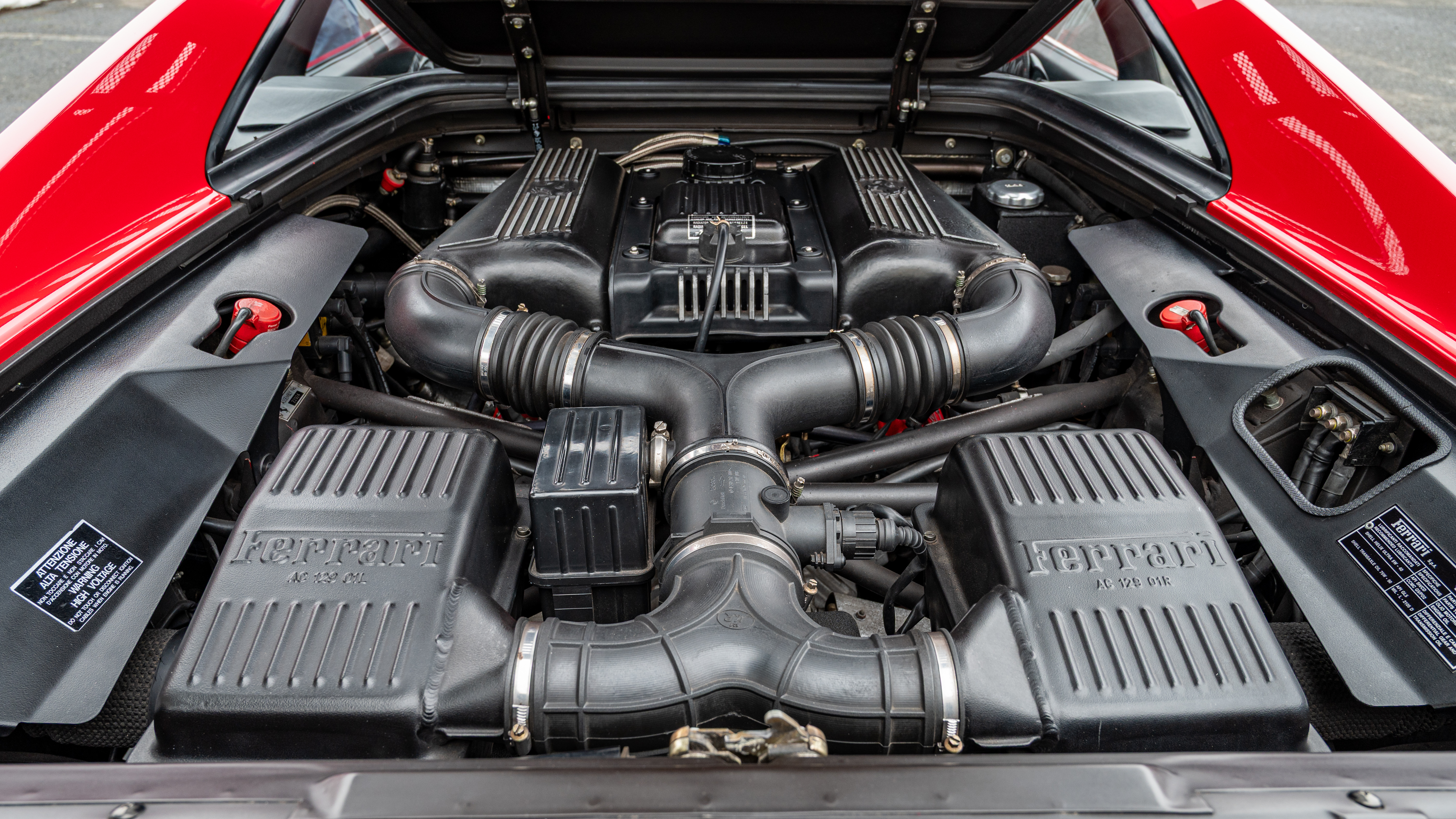 At its heart lies a longitudinally mounted 3.5-liter V8 sending power to the rear wheels aided by a limited-slip differential. An engine-out timing belt major service (2017) plus significant maintenance in 2022 lend well-sorted mechanical condition. The car rides on 18” alloy wheels wearing Michelin Pilot Super Sport tires mounted over four-corner disc brakes w/Black-painted Ferrari calipers.