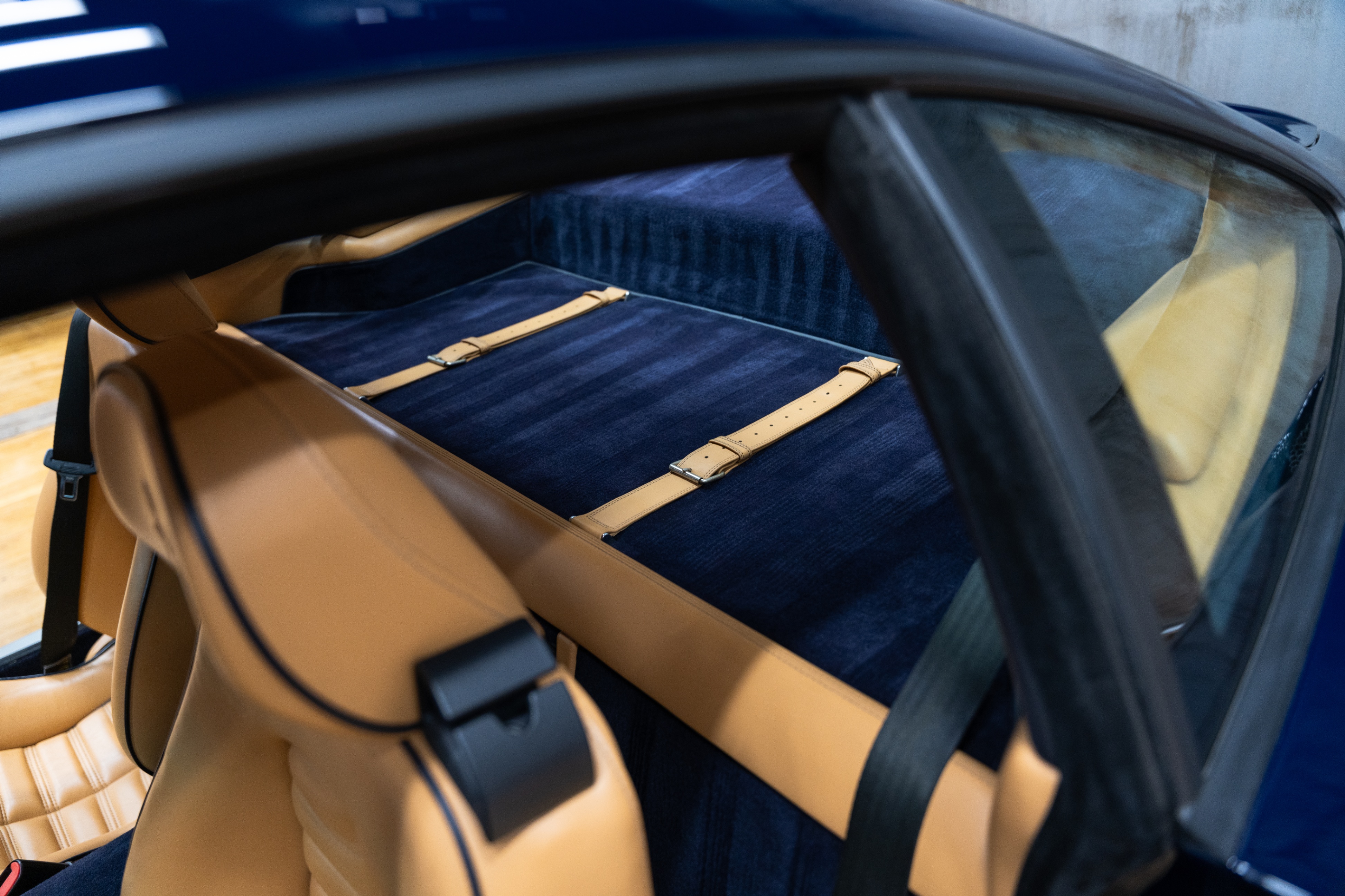 - Beige leather upholstery w/Blue piping