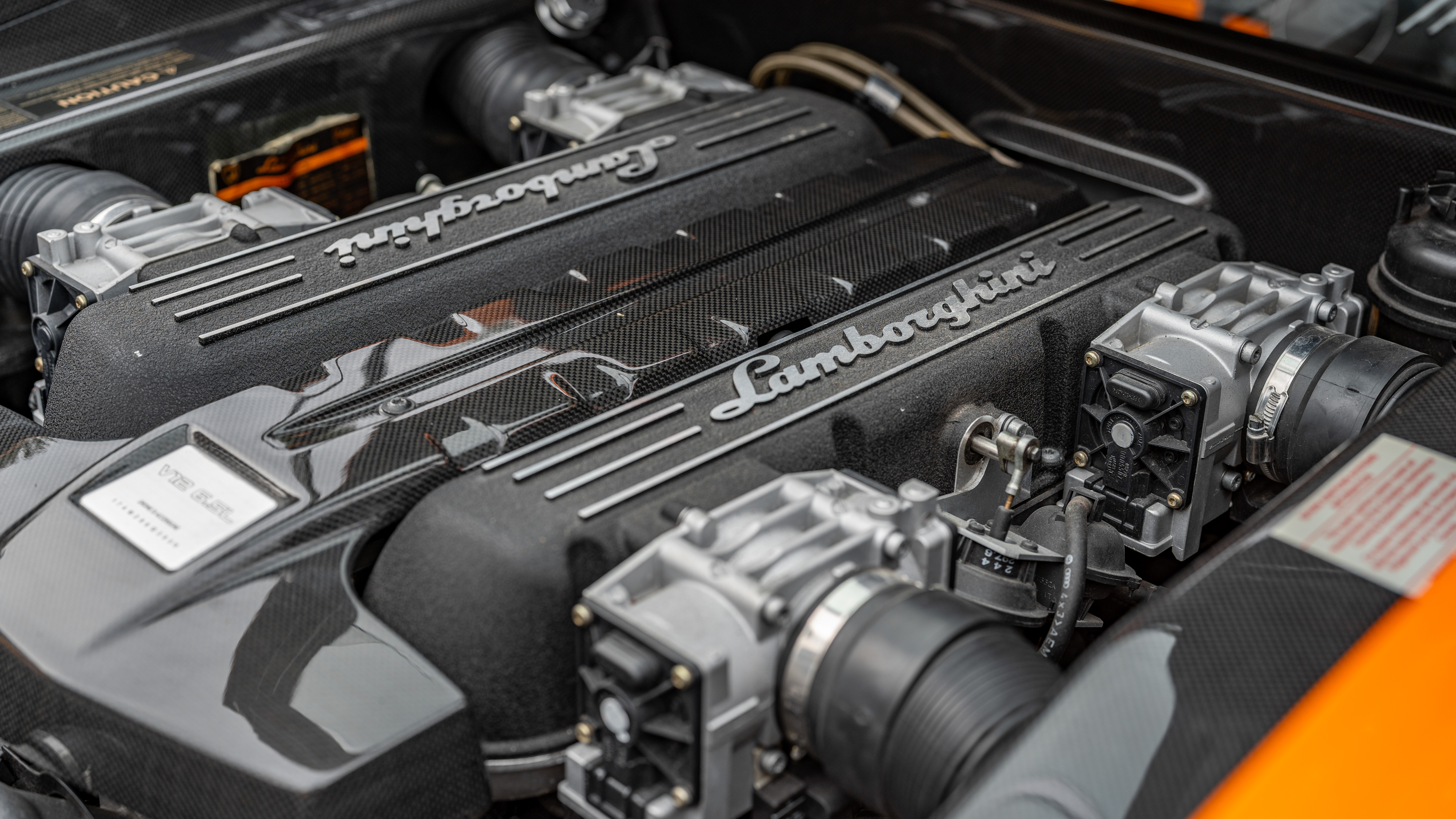 Showcased through a transparent rear engine cover, its 6.5L V12 engine delivers 632 horsepower, directed by 6-speed automated shifting. Top equipment includes cross-drilled carbon ceramic brakes, a limited slip differential, Viscous Traction all-wheel drive, and a front axle lift system. By design, automatic rear spoiler and upper intakes deploy at speed, working in concert with asymmetric lower aero elements. Located in Jacksonville, Florida, this Raging Bull is accompanied by a clean Carfax report, service records, its original Canadian instrument cluster, and factory accessories.