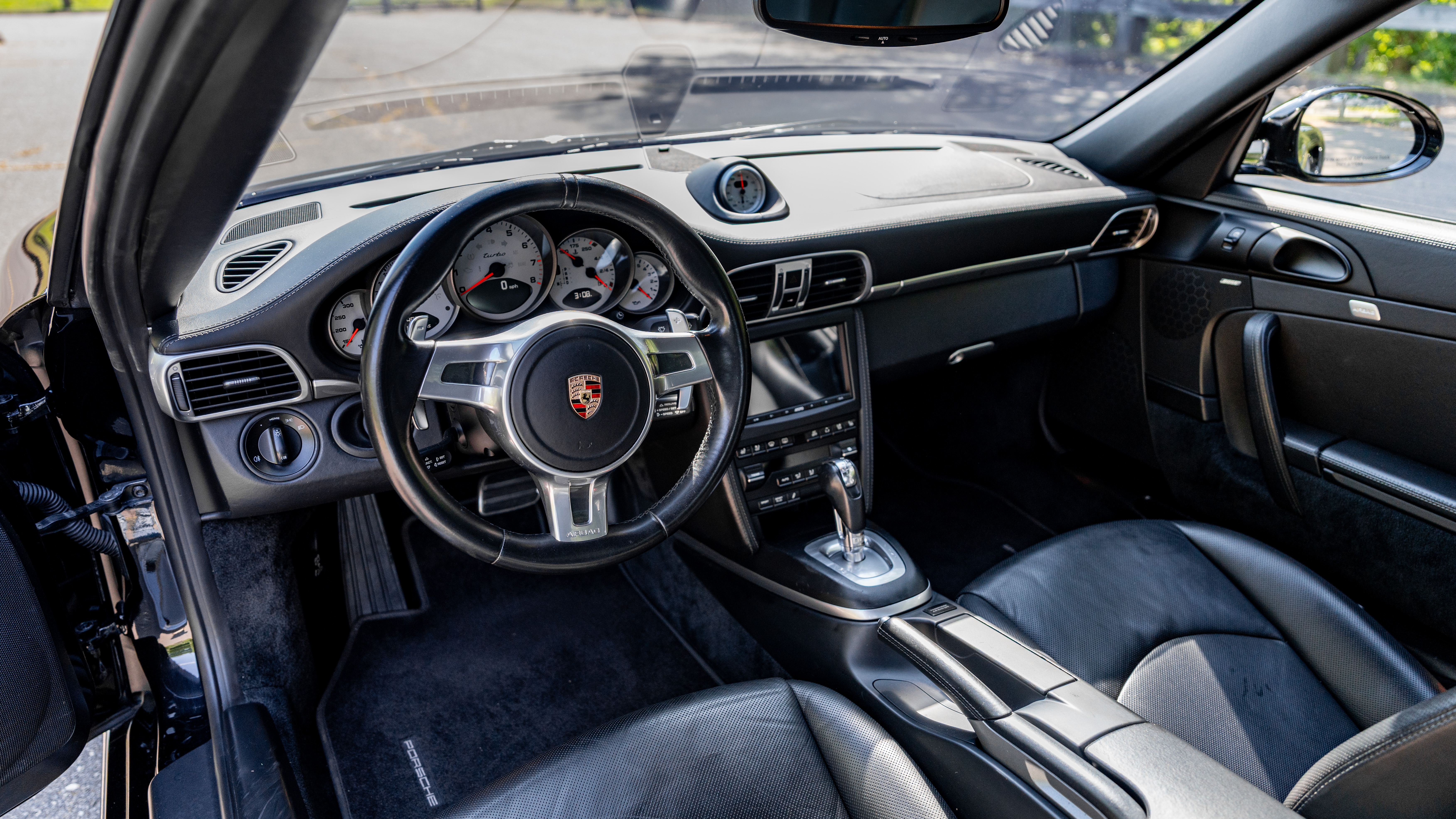 Beyond its factory options, this Turbo benefits from tasteful upgrades that enhance both performance and presence. The car rides on 19-inch BC Forged wheels and is fitted with a Softronic tune, a Shark Werks muffler, and a DSC Sport suspension controller – modifications that build upon Porsche’s engineering to unlock even more capability. The result is a 911 Turbo that sounds sharper, responds quicker, and looks more aggressive, all while preserving everyday comfort and long-distance usability. For buyers seeking a lightly modified example with thoughtful enhancements, this 997 Turbo stands out. The original muffler and suspension controller will be included with the sale, offering the next owner the chance to return the car to its stock state should they choose to do so.