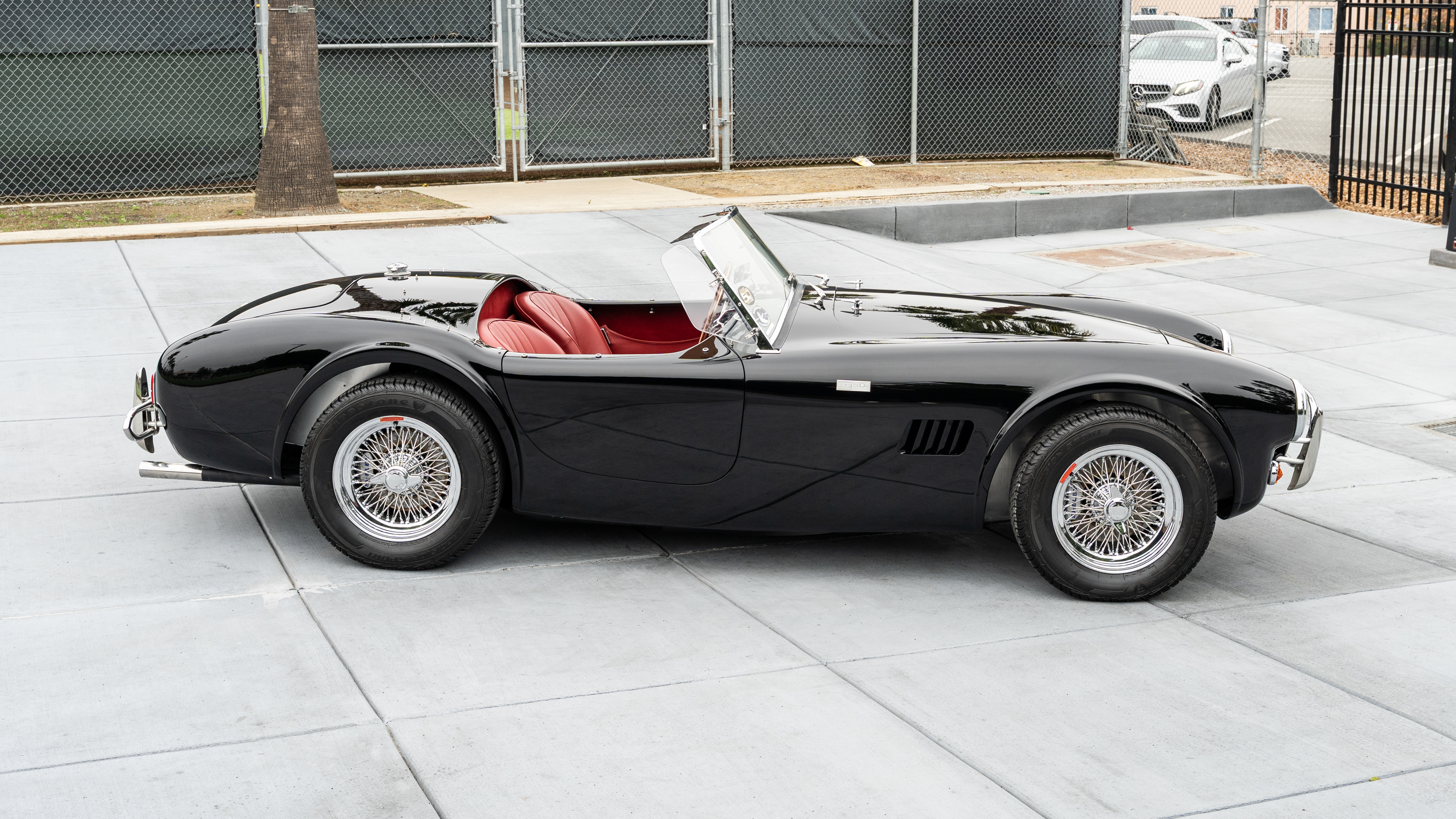 This example, featured on Sotheby’s Motorsports, represents one of 50 examples originally allocated for sale to the public. The Cobra’s fiberglass body is defined by multiple features specific to 50th Anniversary Edition models, including a Black paint finish and 50th Anniversary exterior badges/emblems. Further exterior highlights that complement its appearance include external front and rear chrome bumpers, chrome-finished rear fuel cap, and adjustable windscreen-mounted wind wings.