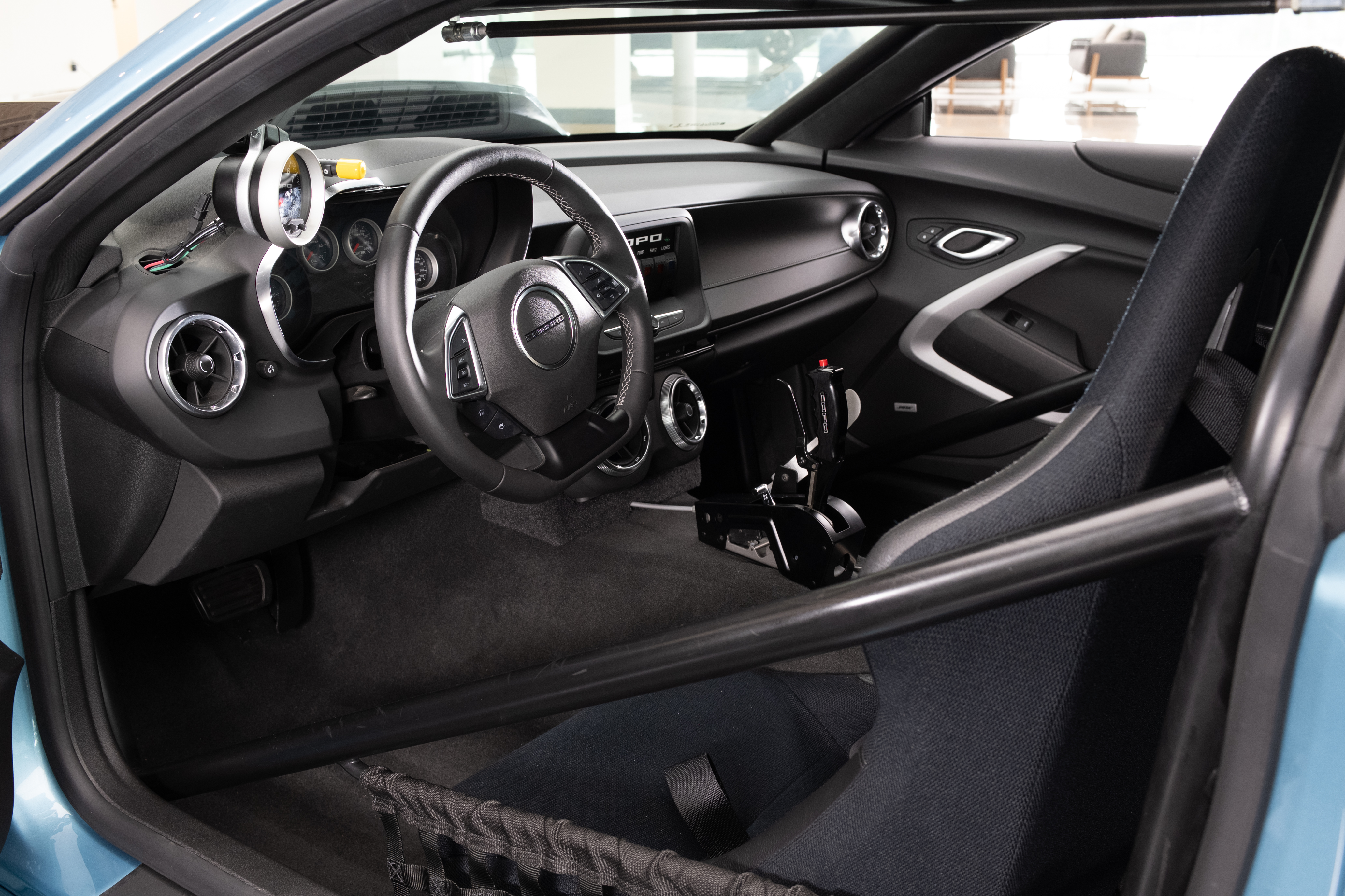 Heritage-only Azure Turquoise paint delivers a stunning factory spec informed by its first-gen forbearers. Additional painted and vinyl graphics, darkened taillights, clear side markers, and Satin Black Weld race wheels cap off coordinated aesthetics. Inside, COPO-embroidered bucket seats and harness bar restraints face Autometer instrumentation complete with a 10k rpm tachometer. Never started and essentially as delivered, this investment-grade COPO Camaro 427 is sold with a Seller’s Disclosure, its original order forms, build sheet, and car cover.