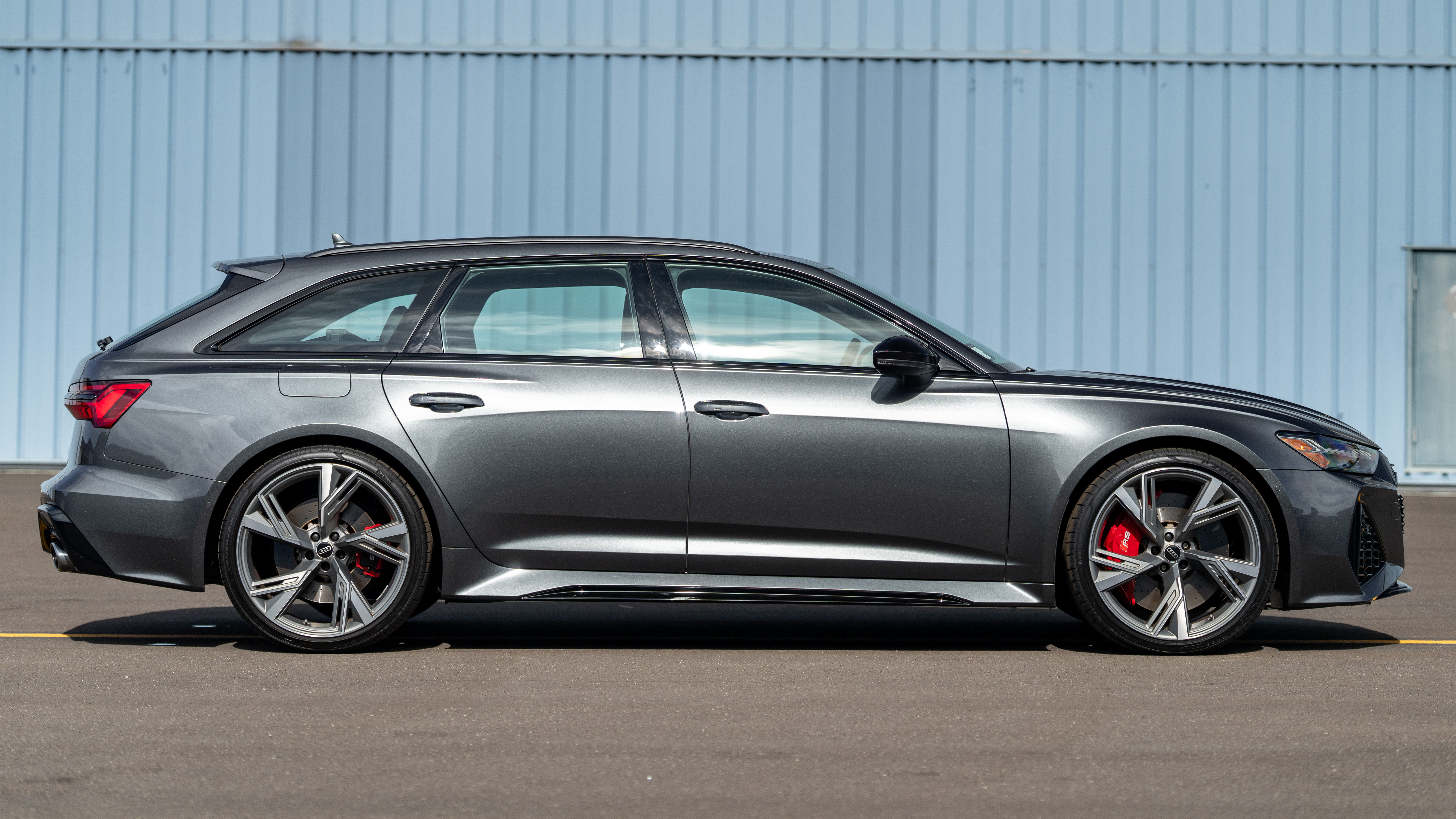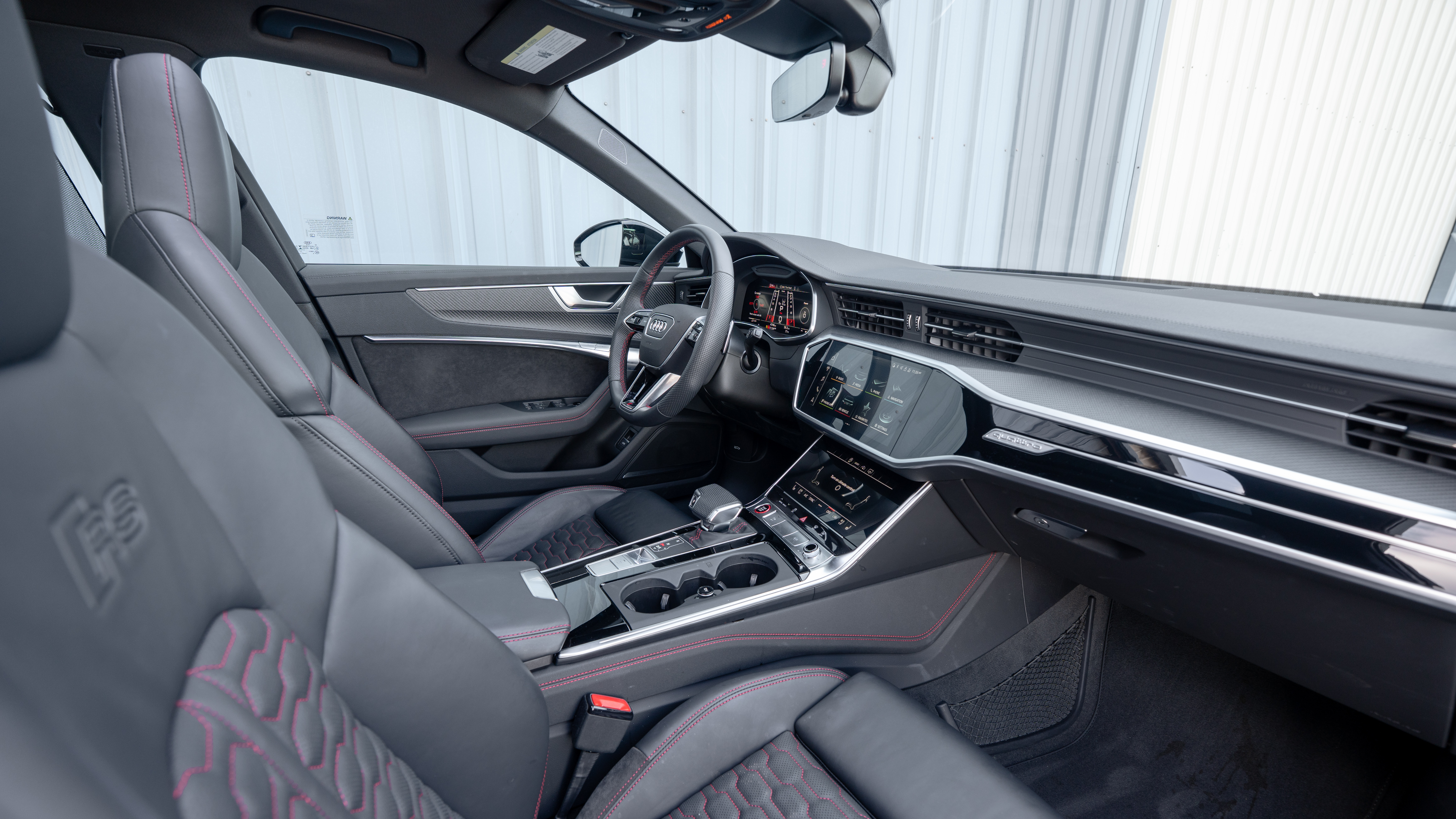 021 Audi RS6 Avant finished in Daytona Gray Pearl Effect over Black/Red Valcona Leather with honeycomb stitching
