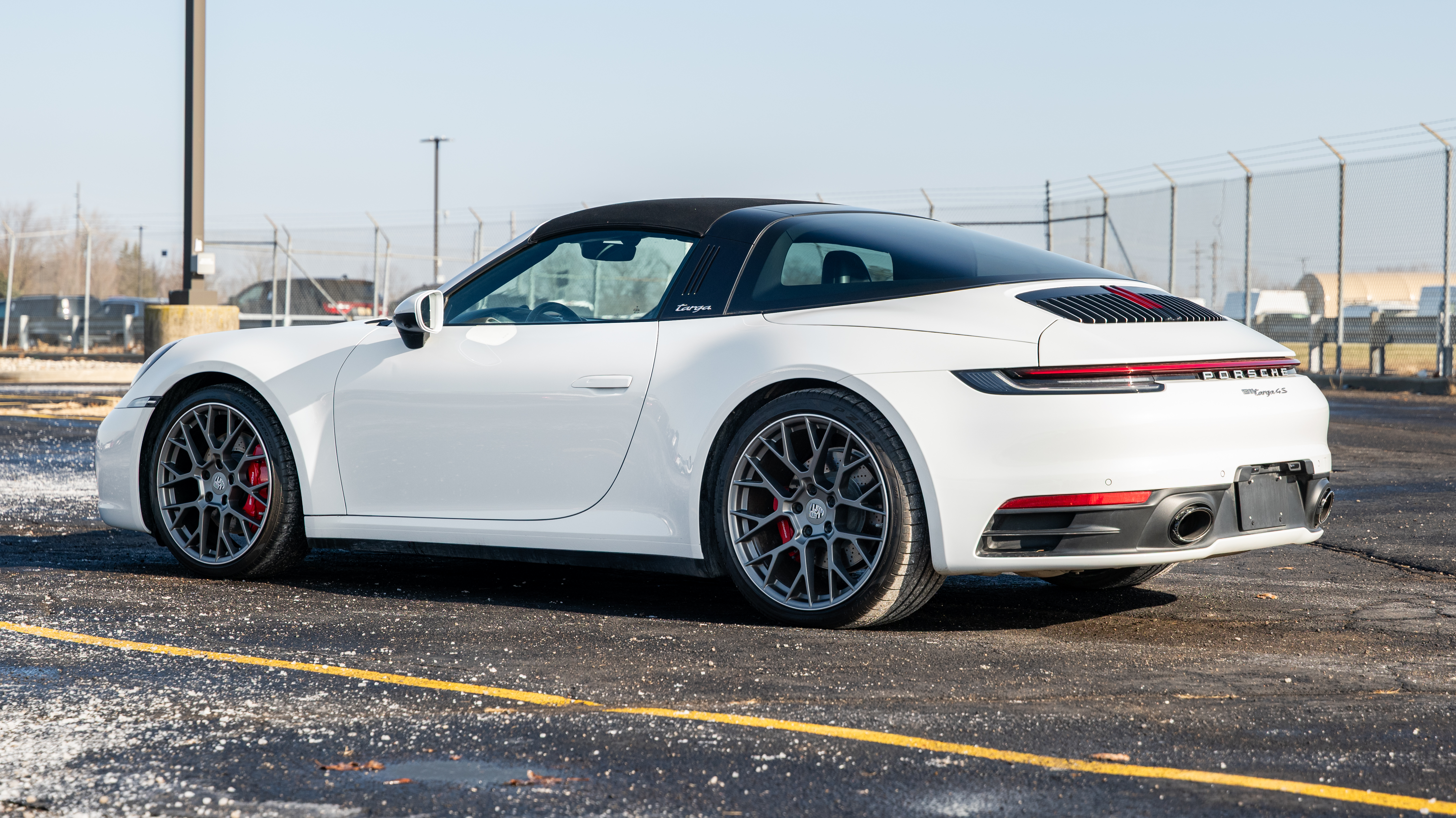 Finished in Carrara White Metallic over a Black leather interior with extensive deviated stitching in Chalk, this 2022 Porsche 911 Targa 4S presents a compelling blend of modern performance and classic Porsche design. Showing just over 10,000 miles, it is powered by a twin-turbocharged flat-six paired with Porsche’s lightning-quick PDK transmission and full-time all-wheel drive, delivering confident, all-weather capability. The signature Targa roof and black-finished Targa bar give the car a timeless silhouette, while the RS Spyder Design wheels in staggered 20-inch front and 21-inch rear fitment complete the purposeful stance