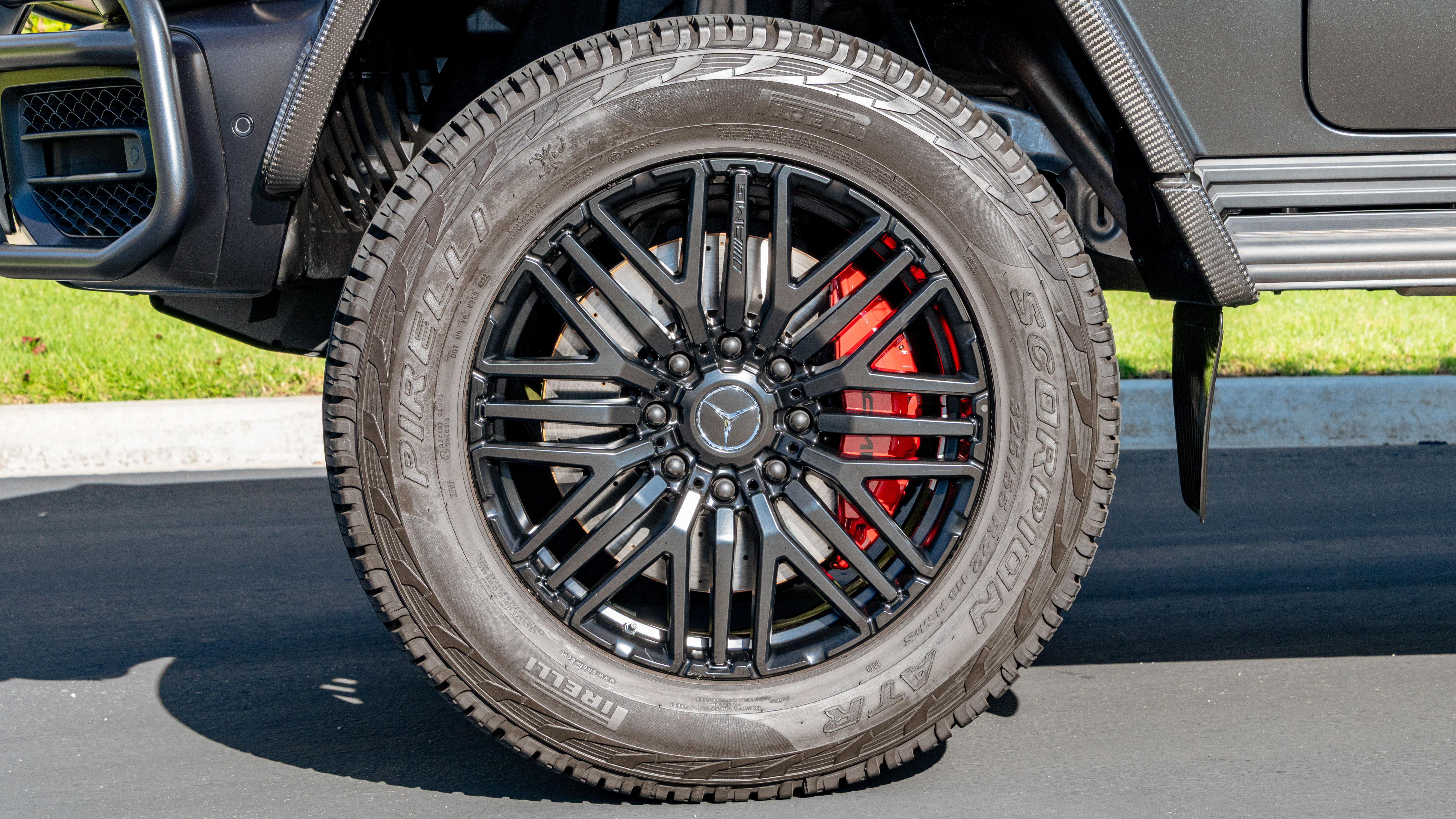 This 2023 Mercedes-AMG G63 4×4² delivers ultimate factory off road capability at the crossroads German engineering and bespoke luxury. Finished in MANUFAKTUR Night Black Magno ($3,950), this top G63 adds Classic Red / Black leather and carbon trim throughout. At its core, twin-turbocharged 4.0L V8 motivation distributes power to all four wheels via 9-speed automatic shifting and a defining four-wheel-drive system. Black AMG multi-spoke 22” wheels, Red brake calipers, and AMG Night Package extras add enthusiast flair front to back—complete with factory tinted lights, a Black brush guard, and AMG grille in Gunmetal Grey. Full PPF ensures peace of mind for any use case.