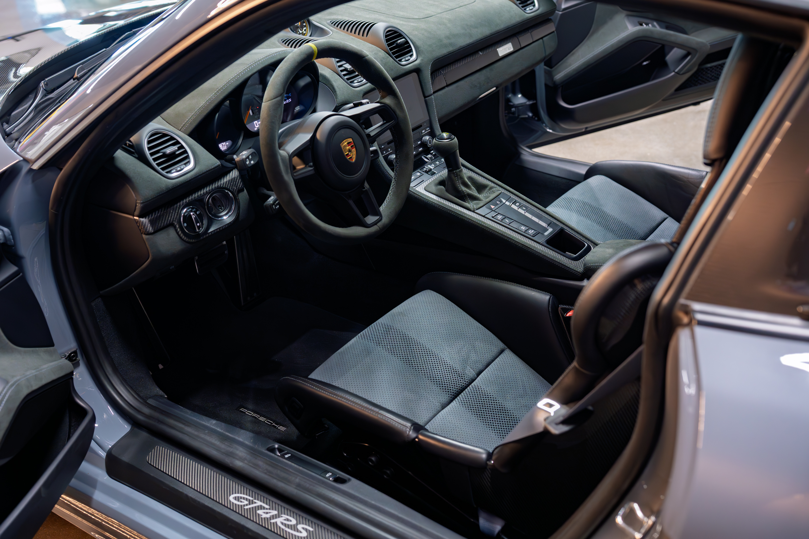 Finished in Arctic Grey over a Black Leather and Race-Tex interior with Arctic Grey stitching, this 2023 Porsche 718 Cayman GT4 RS Weissach is a standout example of Porsche’s most focused mid-engine road car. Showing just 3,900 miles, it is equipped with the Weissach Package, carbon-fiber accents throughout, and lightweight 20-inch forged magnesium wheels. Subtle yet purposeful details—including window triangle trims in carbon fiber and seat belts finished in Arctic Grey—underscore the car’s motorsport intent while maintaining a cohesive, factory-correct presentation.