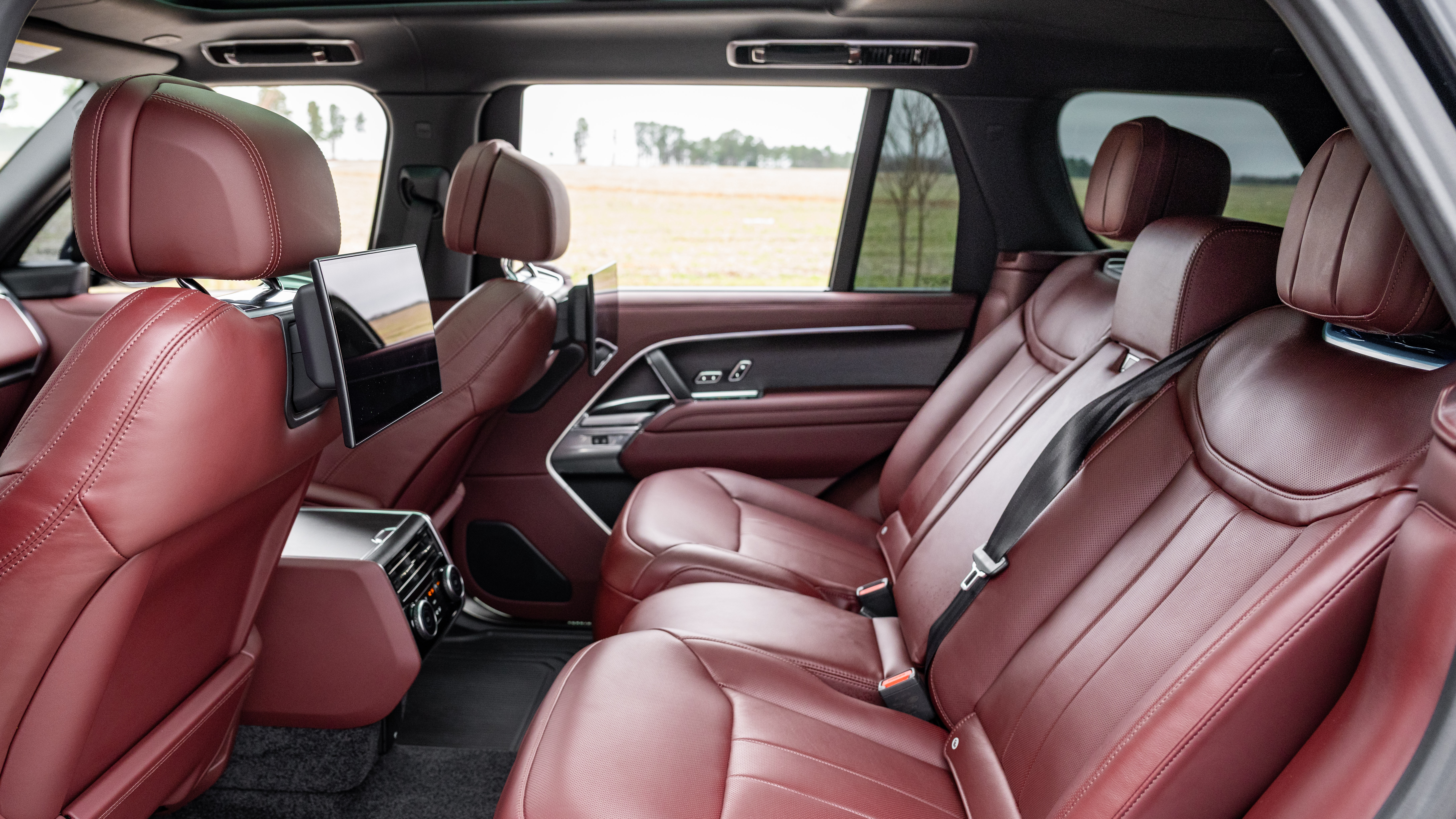The interior is richly appointed in Deep Garnet semi-aniline leather, creating a bespoke cabin environment. Luxury and technology are seamlessly integrated from a head-up display, full suedecloth headliner, and refrigerated front console storage, to adaptive cruise with stop-and-go plus a comprehensive suite of comfort amenities including power-adjustable seating and advanced climate distribution. Entertainment is delivered through an immersive Meridian audio system with 35 speakers, complemented by dual front and rear LCD displays, providing a first-class experience for all occupants.